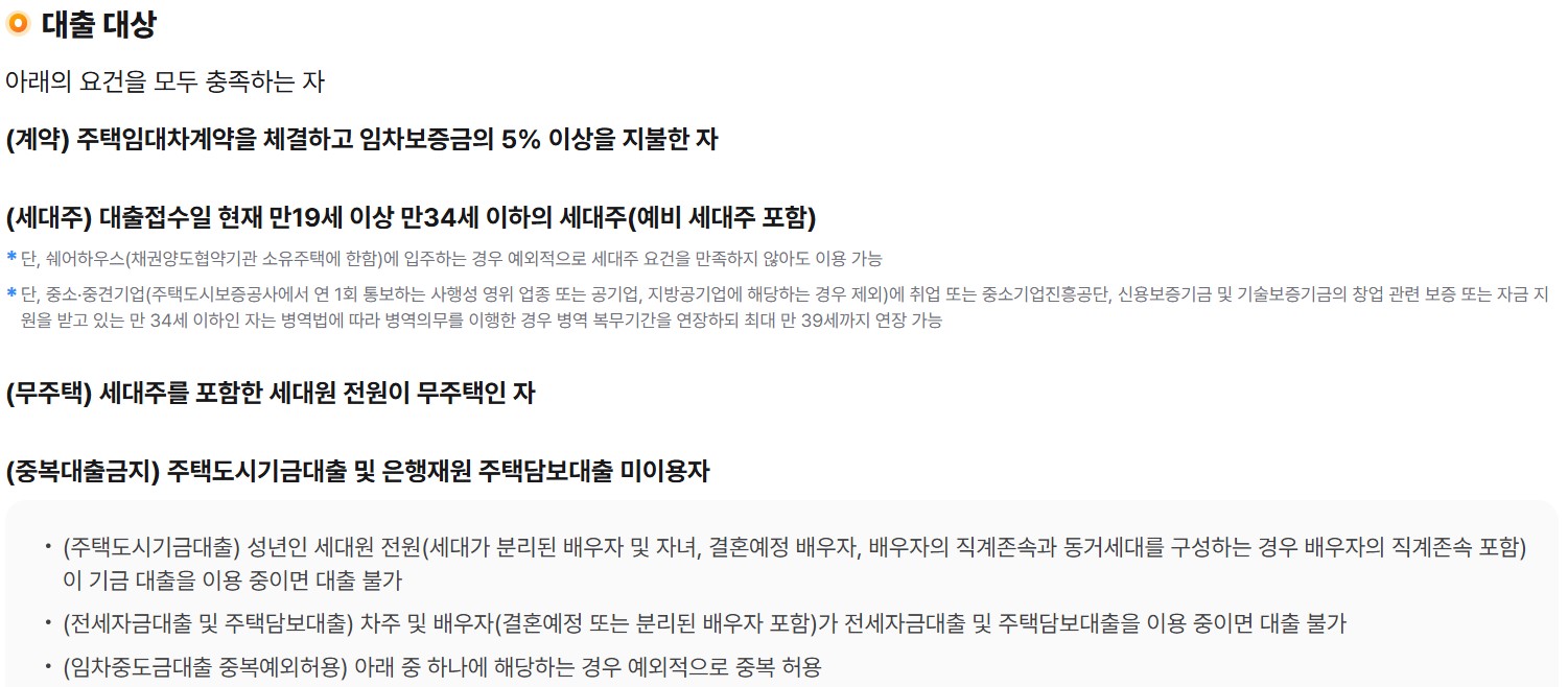 - 임차보증금 반환보증(HUG 보증) 가입 필수: 미가입 시 대출 실행 불가