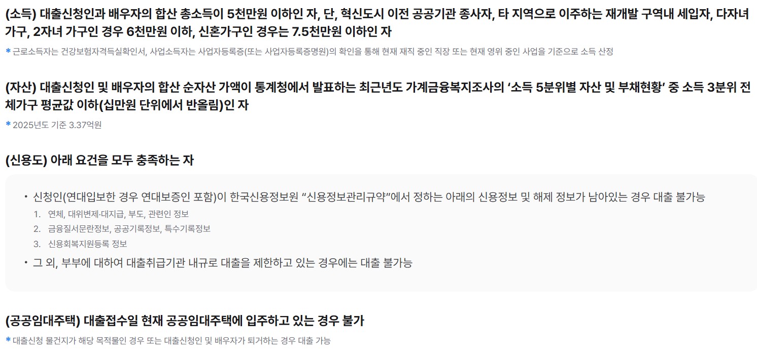 단독 세대주: 연 소득 5천만 원 이하 / 맞벌이·신혼부부: 합산 7천만 원 이하